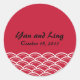 The sticker is made on wonderful paper and had no problem sticking to the bag that I purchased to put it on. I wanted to find a design that would be cute for the bride and groom and this one fit the bill as it has cute "bees" buzzing around and the wedding was taking place in a town called "Bee Cave". The packaging was great and protected the stickers. The website is easy to navigate and there are so many color choices. I had no problem finding a color that the bride was using on everything else selected. The design was adorable and there were many to choose from. You can make the figure as larger or smaller and you can place the photo and writting whereever you want to in the sticker. The printing is fabulous..better than expected.