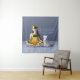 Origami Gold Foil Yoga Meditating Catwoman and Cat Tapestry