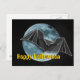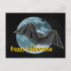Origami Paper Bat with Full Blue/Yellow/Brown Moon Postcard