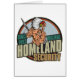 Original Homeland Security with muscle bound Indian chief with war paint and feathered spear! Round background with large Original HomeLand Security Since 1492 text!