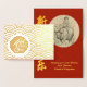 Original painting by RB of water buffalo and child handling a book inside the card. Design on horizontal greeting card with real foil ink in gold in front + "Year of the Ox" onto a golden circle (front) and Asian pattern + inside: Happy New Year in Chinese (vertical calligraphy), text to customise on red decorative pattern and frame for Water buffalo painting + the same painting in real foil ink in back. Available with other original paintings. Matching Greeting card, holiday postcard, invitation, craft products and more... Perfect for Vietnamese New Year of the Ox 2021.