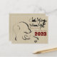 Original drawing of a Cat by RB. Design on horizontal holiday postcard with bistre traditional handmade paper - made in Vietnam - (image printed) as background (front and back) + Vietnamese greeting handwriting in black + "Year of the Cat" and large 2023. Matching greeting card and more... Perfect for an original and modern Vietnamese New Year of the Cat 2023.