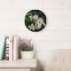 Elevate your home decor with the dramatic elegance of Dark Botanical Art. This sophisticated wall clock features an exclusive, authentic macro photograph of delicate white plum blossoms glowing with luminous light against a deep, moody background.
