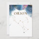 Enjoy a celestial constellation theme with our constellation table signs! Collection with 15 different constellations to choose from, but if you need more, please feel free to add a different constellation name to any of our table number cards (even though card would not have the correct star formation on the bottom, it will allow you to complete your set). Orion table number sign with exquisite watercolor stains and celestial map globe framing "Orion" constellation name in a golden hue. Bellow, "Orion" star formation in golden foil. Watercolor stains and celestial map in a beautiful blend of blue, navy, turquoise, purple, magenta, fuchsia, lilac and golden watercolor hues. Ability to change white "background colour" to any colour you like by selecting "customise further" (please make sure to make changes in both front and back). Guide your guests to their table with our coordinating table seating chart cards or our seating chart sign. Part of our "Mystic Garden Celestial Collection" with a variety of coordinating products available.