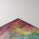 A bright and colourful outer space photo of the orion nebula. Turquoise yellow and orange ethereal plasma gases with luminous highlights create a colourful composition.