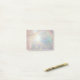A bright and colourful outer space photo of the orion nebula. Turquoise yellow and orange ethereal plasma gases with luminous highlights create a colourful composition.