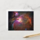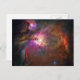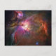 This space photograph shows the massive Orion Nebula, and was taken by the Hubble Space Telescope. The Orion Nebula is the birthplace of many new stars, and over 3000 stars are present in this image, surrounded by swirling clouds of gas and dust. The colours of the original photo have been enhanced slightly, and include rich oranges, pinks and purples.