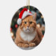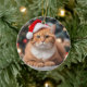 Cute Ginger British shorthair cat wearing a Santa hat.