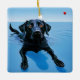 "The Fetcher's Dream" Adorable Friend. A surreal representation of a Labrador dog in water, this piece highlights the essence of play, with a distant red ball teasing a game. This artwork captures a Labrador's dog’s devotion and love of play, surrounded by surrealistic blue hues of the sea.