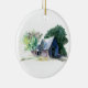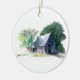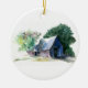 Barn and Christmas star. One side of this round ornament shows watercolor painting of rustic barn (original artwork by John A. Muir). Other side is an abstract of a "holiday star" on a blue background.