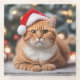 Cute Ginger British shorthair cat wearing a Santa hat.