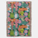This throw blanket has a Christmas design of a jumble of various ornaments in many colours.
