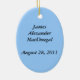 Blue oval ornament to celebrate birth/adoption of new male member of family. Jigsaw pieces with text "A new piece of the family puzzle." On reverse side personalise with child's name and birth/adoption date, etc.=