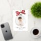 A fun ornament tied with a ribbon is the backdrop for your favourite photo. Easy to personalise with our template.