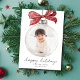 A handcrafted ornament with bow design surrounds your favourite photo in this boho style holiday greeting. Use the back side to include additional photos and a holiday greeting. Use our template to personalise the front quickly and easily.