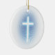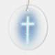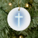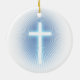Unique christian ornament with blue glowing cross.