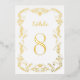 Real foil is here! Table with numeral in foil; choose from gold, rose gold or silver. Edit fonts and backer colours as desired.