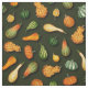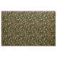 This fabric has small gourds in shades of green, yellow, and orange on a dark green background.