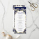 This wedding program card features a minimalist design in classic navy blue and gold. The front highlights the couple’s names inside a golden frame set against a deep navy background, giving a formal and sophisticated touch. The back page presents the complete wedding details in a clean, modern layout accented with subtle golden highlights. The timeless pairing of navy blue and shimmering gold creates an elegant and distinguished design, perfect for formal ceremonies and keepsake stationery.