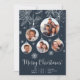 Festive and unique holiday photo cards feature five photos appearing as ornaments on a white outline Christmas tree illustration adorned with holly and snowflakes. "Merry Christmas" appears beneath in white calligraphy script lettering. Personalise with your family name, the year, and individual names along the bottom.