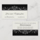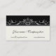 Ornamental scrollwork border black, ivory business card template, featuring a beautiful black ornamental border with white scrollwork and a dotted line on a black stripe on ivory background. This elegant design has a vintage feel to it. It is perfect for personal or professional use. Just change background colour- black- to colour of your liking.