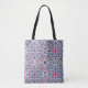 Stylish tote bag featuring an intricate Turkish tile inspired pattern with beautiful floral and arabesque motifs in blue, purple, and vibrant red tones. This artistic design adds a colorful Mediterranean and boho touch to your everyday style. Perfect for shopping, books, errands, or daily essentials. A great gift for lovers of decorative patterns, global art, and elegant boho fashion.