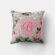 Wildly ornate and undeniably feminine pattern of flowers - lilacs and roses mostly - in pink, purple and white, with green foliage. Edit the text to any monogram or other text you like. These pillows make wonderful gifts for Parisian or cottage chic decor.