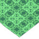 Table runner in an ornate, geometric arabesque pattern in shades of dark emerald and mint green