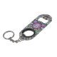 Monogrammed bottle opener with art deco ornamental pattern in pastel purple and green.