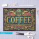 Ornate Vintage Coffee Typography Sign with Jewel-Toned Art Nouveau Flourishes, rich teal and gold decorative café artwork for decoupage and furniture upcycling. This bold coffee design features large antique gold serif lettering set within an elaborately framed Art Nouveau panel. The deep teal background is accented with jewel-toned magenta, turquoise, emerald, and warm coral highlights, creating a vibrant yet refined decorative composition. Intricate scrolling flourishes and ornamental motifs frame the typography, giving the piece a luxurious vintage café sign aesthetic. The metallic gold detailing appears slightly embossed, enhancing the dimensional effect and adding richness to the overall presentation. The color palette combines deep teal, antique gold, emerald green, magenta, and hints of warm coral, producing a dramatic and eye-catching statement piece ideal for kitchen décor, coffee bars, and bold creative projects. Artwork similar to a digitally illustrated Art Nouveau café sign with textured painterly finish and decorative gilded detailing……PERFECT FOR: Decoupage, furniture decoupage, furniture upcycling, kitchen cabinet panels, coffee bar backdrops, café themed décor, mixed media projects, tray designs, journal covers, statement drawer fronts, coffee station art, gift wrap for coffee lovers, and bold gallery wall accents..….🖤 NOTE 1. The 18 lb tissue is a great choice if you like a little extra strength—it's easier to handle, resists tearing and allows for gentle repositioning. It’s also more opaque, making it perfect for darker surfaces. The 10 lb tissue is wonderfully lightweight and flexible giving you that smooth, blended finish. It’s ideal for layering on furniture or smaller projects so treat it gently and it will reward you with stunning results!.….🖤 NOTE 2. All items with this particular design share my unique identifying “Letter/s Number/s” label in the title for easy searching. …..🖤