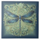 Ornate Art Nouveau Dragonfly Pat#12 Blue ID1222 Tile