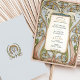 The back features a custom monogram crest, depicting a stylised tree of life adorned with laurel leaves, symbolising growth and everlasting love. This invitation pairs beautifully with matching wedding stationery, including RSVP cards, programs, and thank-you notes, to create a cohesive and sophisticated wedding suite.