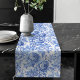 Ornate Blue French Toile Roses Floral Table Runner