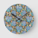 Ornate Blue Periwinkle Floral Classic Art Nouveau Round Clock