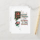 Artistic and elegant restored antique Christmas card art featuring illuminated and intricately detailed script in red, green, black and gold with gold filigree embellishment, ivy with gold highlights and two robins sitting on a vine. Back features complementary graphics and editable text fields.