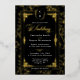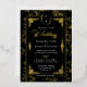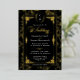 Elevate your stationery suite with this Regency-inspired wedding invitation. This design features a striking black background contrasted by an ornate gold foil floral border and a classic Victorian monogram crest. It is the perfect choice for couples hosting a formal black-tie affair or a vintage-themed celebration in a grand chapel.