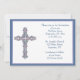 Christian invitation with ornate blue and purple scrolled cross. This invitation is suitable for first holy communion, confirmations, baptisms or christenings. Can be easily customised with the details of your event. Invitations come complete with envelopes.