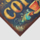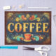 Vintage Coffee Typography Sign with Ornate Gold Lettering and Retro Teal Background, decorative café style artwork for decoupage and furniture upcycling. This bold and decorative coffee design features large antique gold lettering set against a rich distressed teal background. Ornate flourishes in warm coral, turquoise, and muted gold frame the composition, giving it a classic café sign aesthetic with a handcrafted vintage feel.