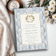 Ornate Dusky Blue Gold Damask Watercolor Wedding Invitation