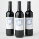 Ornate Dusty Blue Crest Monogram Wedding Wine Label