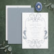 Ornate Dusty Blue Floral Line Art Monogram Invita Invitation