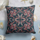 Bold and dramatic, the Ornate Elegance in Charcoal Teal pillow combines a rich teal background with intricate mandala-inspired pink patterns. A perfect accent for modern, eclectic, or bohemian interiors.