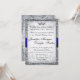 Ornate Fairytale Storybook Wedding Invitation Grey. Featuring regal royalty colours of royal blue and silver and pearlescents. This classy and sophisticated fairytale wedding invitation is great for any theme wedding or black tie wedding. Bringing a touch of elegance and charm you will send greetings to your guests in utter style with this fairytale wedding invitation. Has faux pearls and diamonds on the flourishes that are int eh corners. A royal crown sits in the top centre adorned with gold and jewels. A filigree illustration sits atop a vintage background and an ornate border holds the ornate paper textured middle. Matching products can be found in the wedding section of my store.