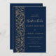 Ornate Floral Gold Navy Nuestra Boda Wedding Invitation