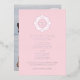 Ornate Floral Monogram Photo Wedding Custom Real Foil Stamped Wedding Save The Date Invitations features your personalised monogram initials in elegant script typography surrounded by an embossed ornamental floral frame and custom text overlay on a pink background. Add your favourite photo on the reverse. Perfect luxury monogrammed save the date invitations for weddings, engagements, anniversaries, birthdays, cocktail parties, parties, Christmas, celebrations, corporate and business creations. Created by Evco Studio www.zazzle.com/store/evcostudio