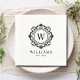 Ornate Floral Monogram Wedding Elegant Black White Napkins features your personalised monogrammed initials in elegant script typography surrounded by an ornamental floral frame and custom text overlay. Add a touch of style and sophistication to your wedding celebration or event with these high quality napkins. Perfect for weddings, engagement parties, bridal showers and anniversaries. Celebrate your special day with customised napkins with your initials for a stylish personalised touch. Created by Evco Studio www.zazzle.com/store/evcostudio