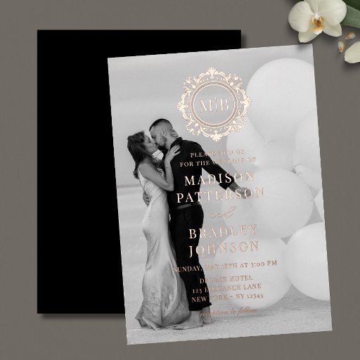 Ornate Floral Monogram Wedding Elegant Rose GoldDesigned by Shirley Evans