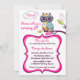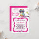 Ornate Floral Owl Hot Pink Kids Birthday Party Invitation
