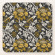Ornate floral pattern with large gold flowers and cream leaves on a black background. The design is intricate, vintage-inspired, and elegant.