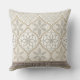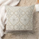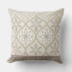 An ornate, symmetrical seamless pattern throw pillow featuring interconnected circles, diamonds, and floral motifs in warm beige and brown tones on a light background. The design combines structured geometric borders with stylised leaves and flowers, blending natural inspiration with architectural precision. With influences from Moroccan, Victorian, and Mediterranean styles, this pattern evokes timeless elegance and detailed craftsmanship. Ideal for home décor lovers, tile enthusiasts, and those drawn to heritage-inspired designs. Perfect for artisan gifts, cultural-themed projects, or classic decorative accents.